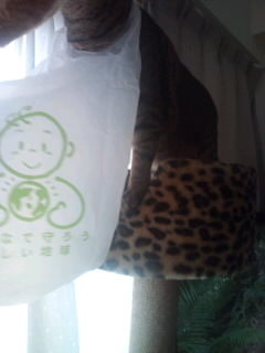 もうミイ君の顔の横に膨らんだレジ袋が並んで走るので