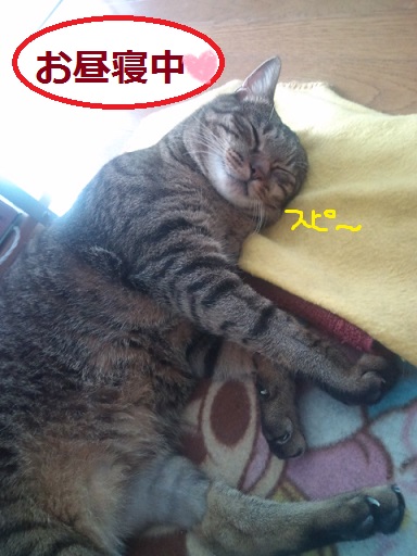 留守番中はいつもの座布団ベットで昼寝してました。