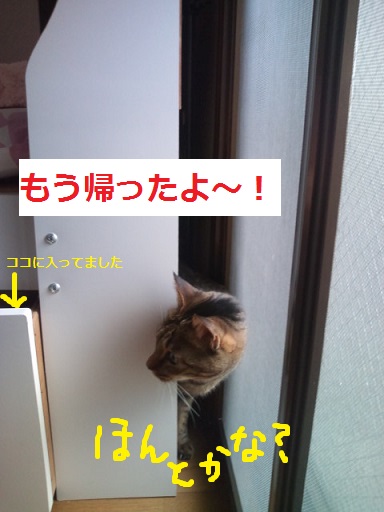 もう帰ったからいないよ~と言うと、のそのそ出てきました。
