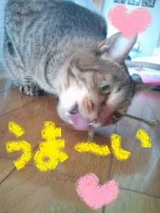 真剣にカリカリを食べるミイ君でした!