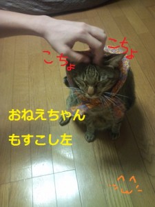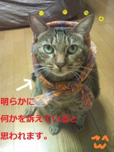 ミイ君、緩くなったハンカチに手を突っ込んで脱ごうとしますが、