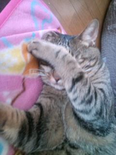 お姉ちゃんの部屋の入り口でくつろいでました。